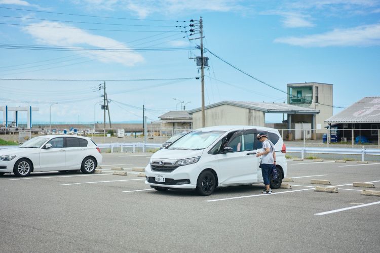 かつじろう (車に釣り道具をしまってから)反対側に浜があるので、ちょっと行ってみます?